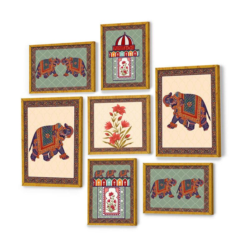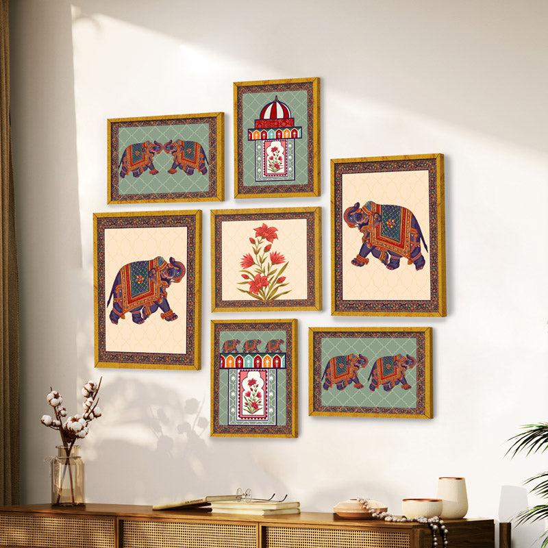 Imagine adding a splash of tradition to your room with these gorgeous wall art pieces. It’s like bringing a bit of story and color to your walls! Dont you just love the way those elephants parade across the frames? And oh, those floralstheyre like a breath of fresh air. The warm wood frames tie everything together beautifully. But here’s the kicker: they make your space feel like a cozy storybook, just waiting for a Sunday chai moment when the windows are open and the world outside is as colorful as your walls.